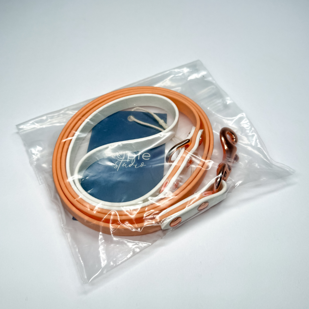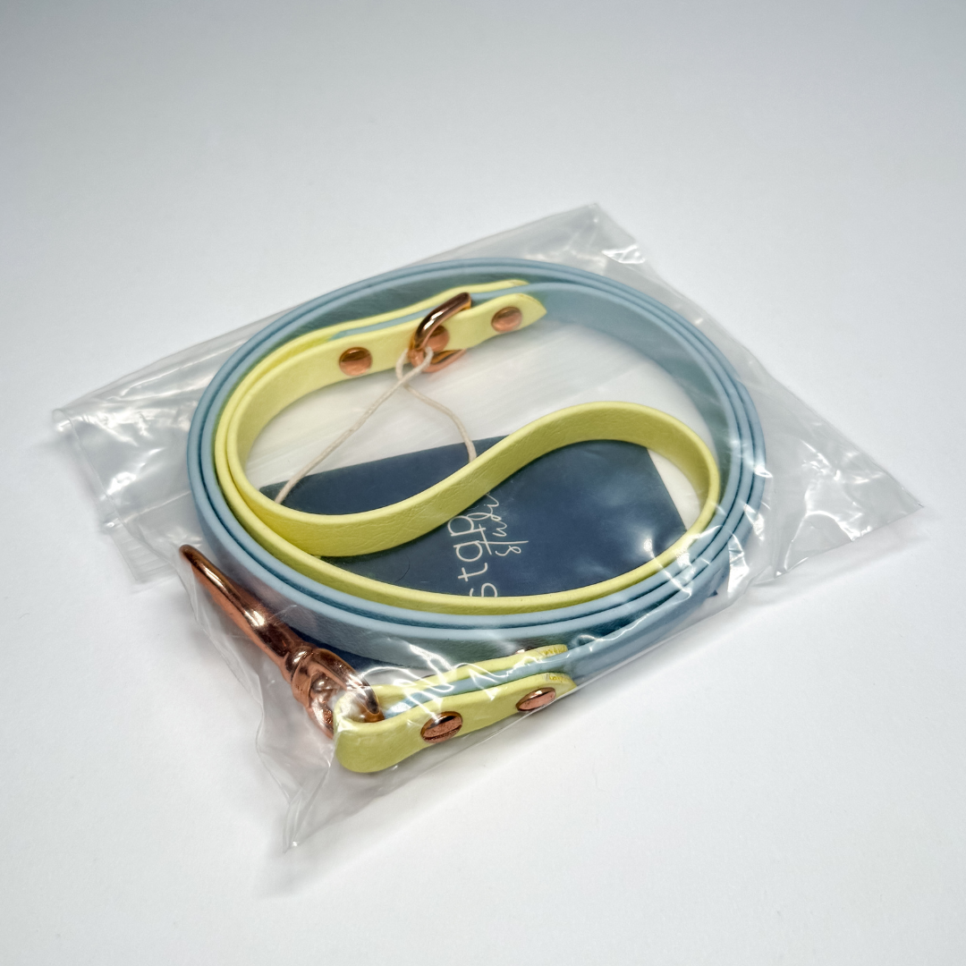 These leashes are 1.2m long and available as-is — no further customization will be available on clearance items. All clearance orders will ship within 1 business day. Clearance items will not come with our signature pouches.