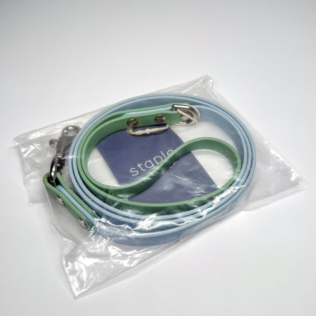 A basic leash made for everyday walks. Designed to be functional, timeless, and easy to use. It features a fixed handle for a secure grip and a D-ring on the handle to clip on poop bags, keys, or small essentials.